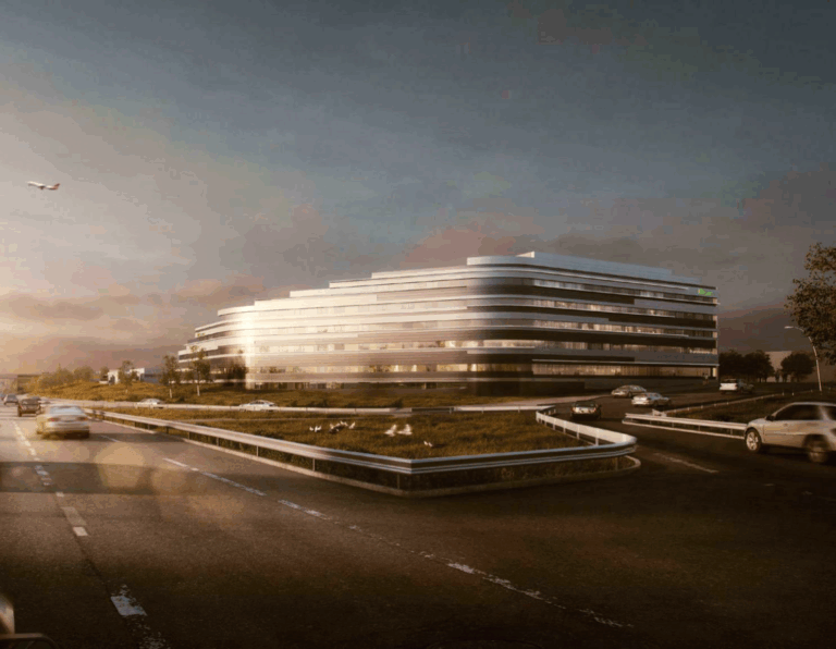 Derrière sa géométrie pure et sa façade en verre, l’architecture du lieu est pensée comme une respiration en plein territoire aéroportuaire. Les clients de l’hôtel sont accueillis dans des espaces structurés autour d’un patio central paysagé.