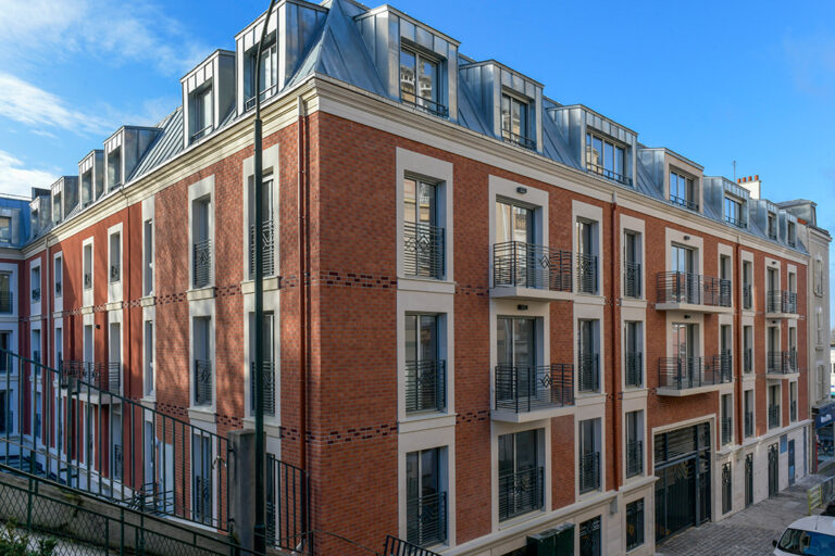 Inspiré par le style Art déco et les constructions en brique typiques du Raincy, le projet met en valeur frises de briques émaillées et motifs décoratifs intégrés aux garde-corps, portails et grilles.