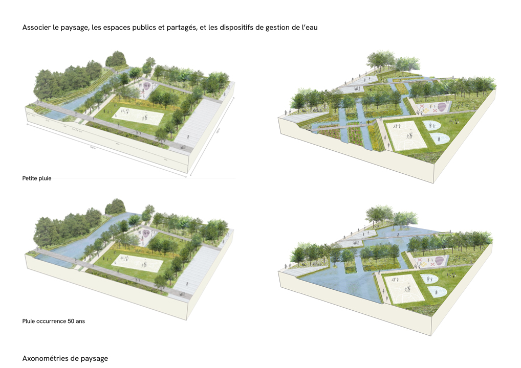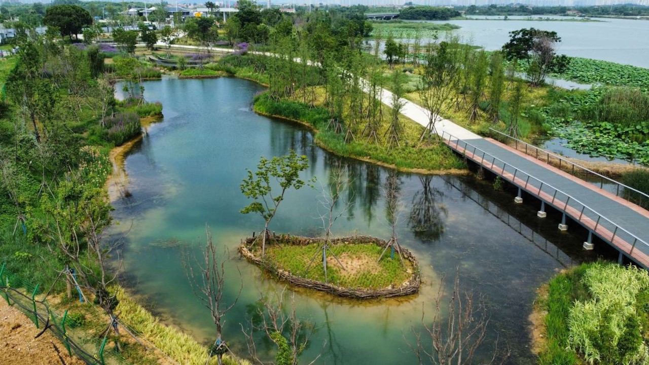 A Caidian, le plan guide et les règles urbanistiques et paysagères ont créé un cadre ambitieux où l’urbanisme est structuré par la trame bleue. Les zones humides sont préservées et tous les espaces publics accueillent à la fois usages et fluctuations des eaux pluviales.