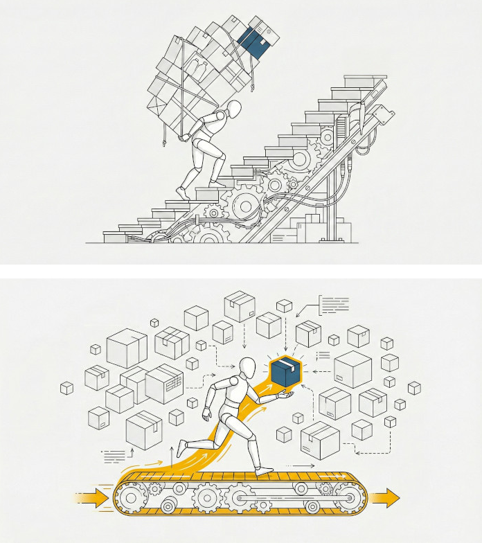 Le modèle traditionnel de l’entreprise est constitué de silos applicatifs : les données clients sont dans un CRM, les données financières dans un ERP, les données projets dans un autre outil. Notre savoir est fragmenté, et nous sommes locataires de nos propres informations, obligés de passer par des interfaces tierces pour y accéder. L’IA et la capacité de créer nos propres connecteurs (nos propres « agents ») nous permettent d’imaginer une architecture où la donnée redevient le centre.
