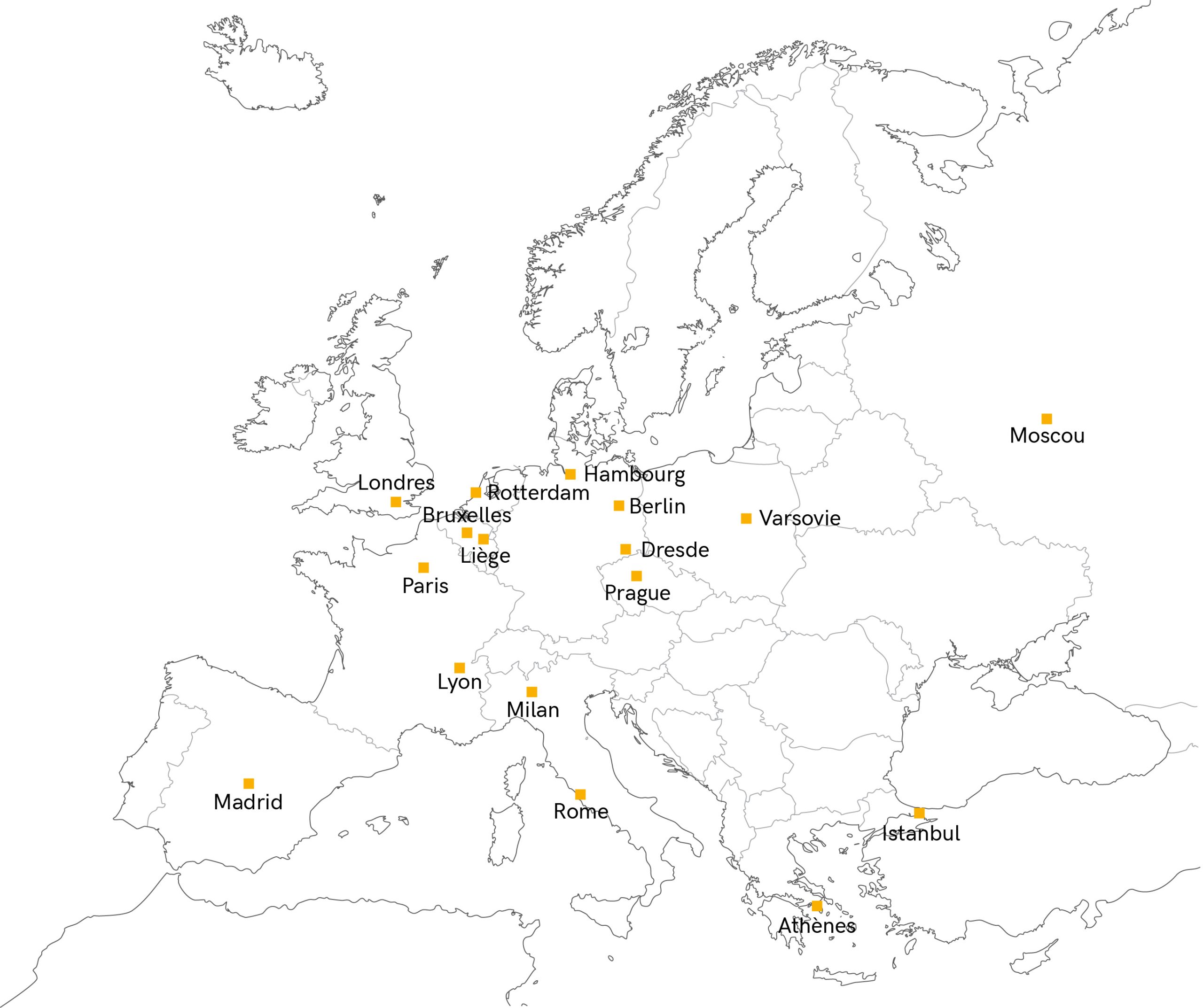 Le réseau s’appuie sur un maillage stratégique de douze bureaux implantés dans les principales capitales et métropoles européennes. Cette répartition géographique favorise une compréhension fine des dynamiques de marché et des cadres législatifs propres à chaque pays, notamment en matière d’urbanisme.