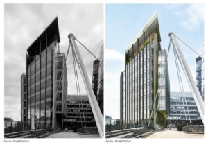 À La Défense, Arte Charpentier intervient 25 ans après la livraison de Palatin 1 pour une réhabilitation ciblée de son enveloppe, avec un objectif clair : améliorer l’image, le confort et la performance énergétique sans démolir.