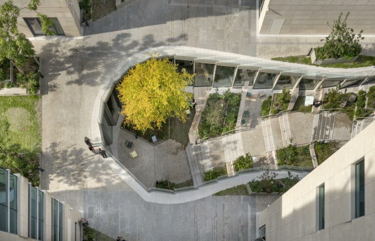 Situé à Minhang, au sud-ouest de Shanghai, le centre de R&D de Saint-Gobain s’articule autour de deux ensembles : le showroom et les laboratoires.