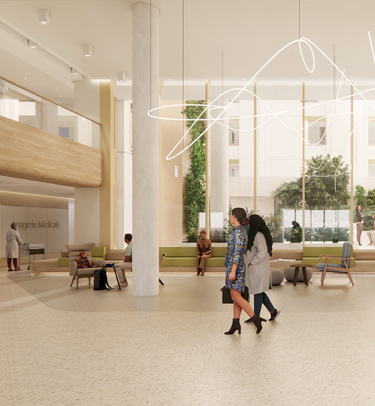 Le showroom, regroupant salles de conférence, d’exposition et d’accueil, se distingue par ses façades en verre galbé sur une structure métallique légère. Les espaces de recherche et développement, répartis sur deux niveaux de part et d’autre d’une rue intérieure sous verrière, bénéficient d’un éclairage naturel et zénithal. Les matériaux naturels dominent les intérieurs, reliés par des escaliers en bois et métal. La complémentarité entre espaces introvertis (sur l’allée intérieure) et extravertis (sur le jardin) confère au projet son originalité et son intégration au site.
