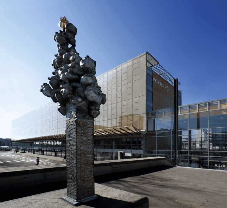 Le Showroom, regroupant salles de conférence, d’exposition et d’accueil, se distingue par ses façades en verre galbé sur une structure métallique légère. Les espaces de recherche et développement, répartis sur deux niveaux de part et d’autre d’une rue intérieure sous verrière, bénéficient d’un éclairage naturel et zénithal. Les matériaux naturels dominent les intérieurs, reliés par des escaliers en bois et métal. La complémentarité entre espaces introvertis (sur l’allée intérieure) et extravertis (sur le jardin) confère au projet son originalité et son intégration au site.