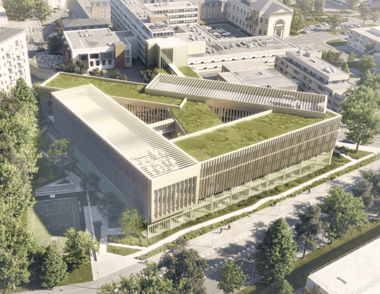 Au cœur du Raincy, le projet de logements sociaux et de résidence senior illustre la réhabilitation de bâtiments existants vers la neutralité carbone. D’anciens bureaux vacants de 1957 sont transformés en logements pour seniors.