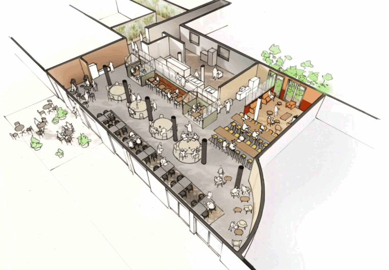 Ce degré d’ouverture fait de l’hôpital un lieu de guérison ouvert à tous, interconnecté, afin de réconcilier l’image de l’hôpital avec l’imaginaire collectif. Une coexistence entre équipements sportifs et espaces publics de l’hôpital est proposée pour affirmer cette mixité d’usages et renforcer ces liens.