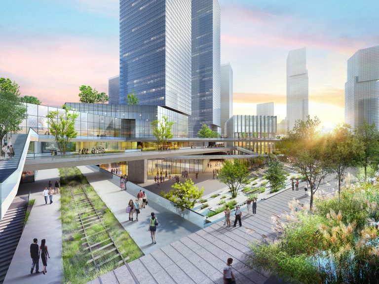 Le « Hub », point d’entrée central, assurera la connexion logistique du site. Une rue piétonne couverte et une rue logistique faciliteront les déplacements.